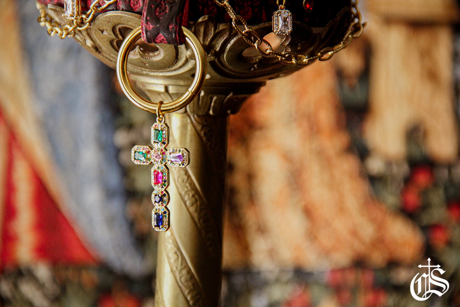 La gamme de chokers "Reliquarium" est une gamme de chokers imposants et richement décorés. La référence au "reliquaire" tient à leur dimension précieuse, valorisée par leurs pendentifs élégants et à ce qu'ils peuvent représenter pour chacun/chacune.